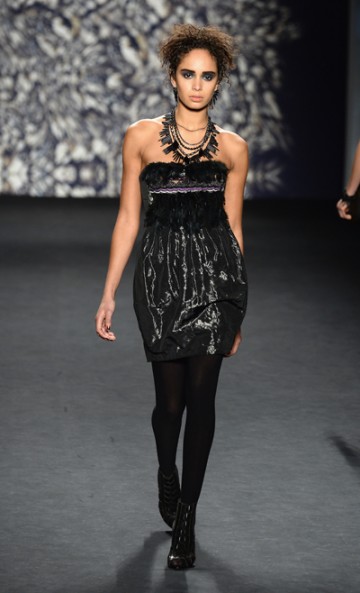 At Nicole Miller Fall 2014, tough fabrics and earthy tones came together to create an armour fit for a modern female warrior. The natural world – in its darkest shades – dominated the catwalk where models dressed in fur coats, peacock feathers and leather separates walked fiercely, their eyes ringed in black. There’s no doubt that these are clothes designed for a strong, independent woman, or at least somebody who wants to feel like her.