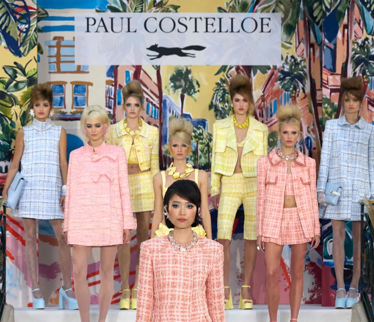 Front-row seats shone with familiar faces: Jodie Kidd, Olivia Cox, and Phoebe and Daisy Tomlinson were among those captured in shots from the S/S 26 Paul Costelloe show at the Waldorf, confirming the designer’s ability to draw names who move between fashion, media, and public life.